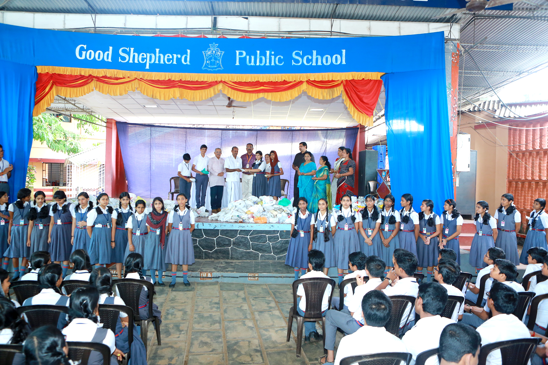 Students from Good Shepherded Public School& Junior College took food packets, bottles and fresh food into school and the produce was delivered to Navajeevan Thomas Chettan which will be served in the hospitals later. During the Public Meeting Thomas Chettan was honoured by the School Authorities.