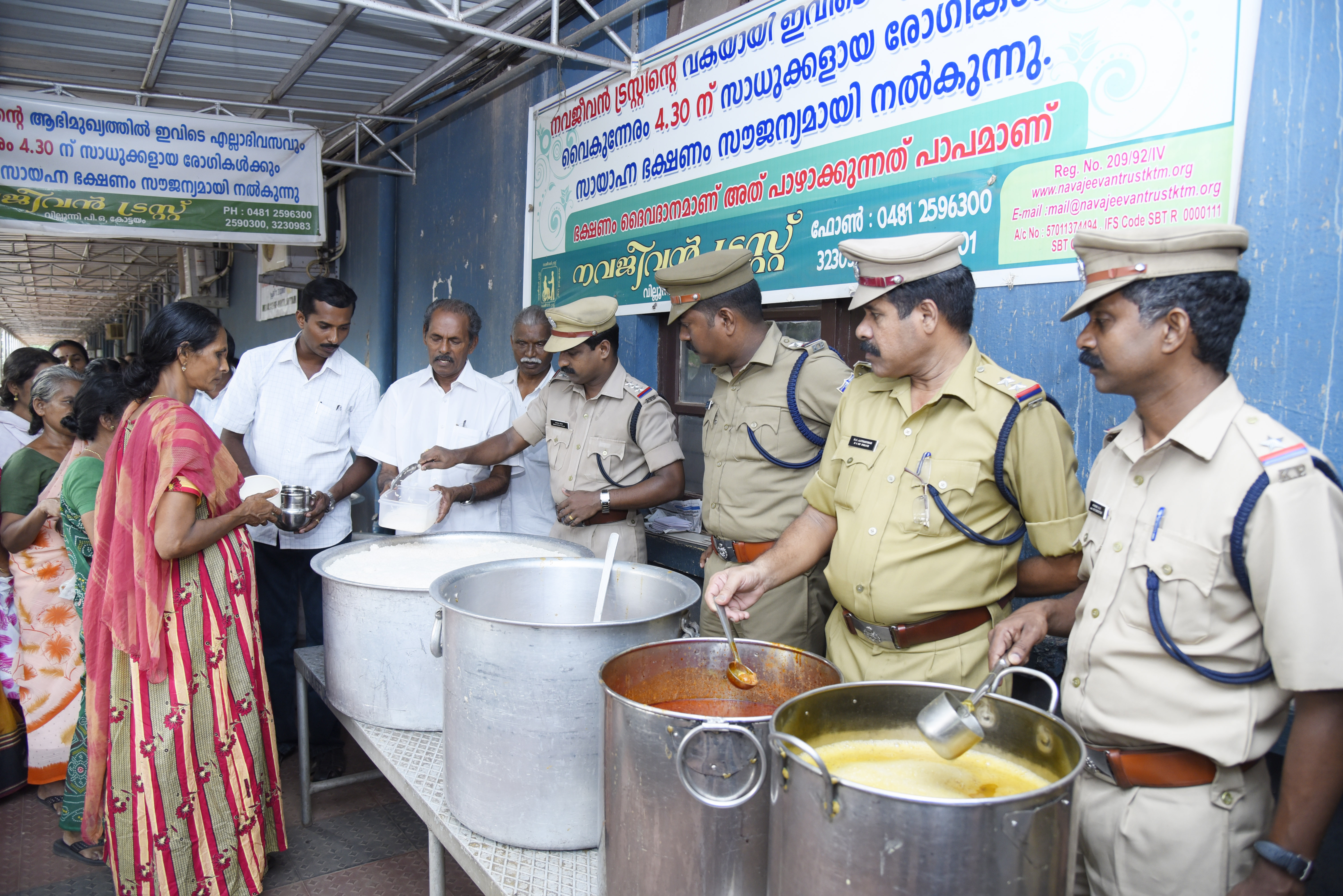 The police force under the leadership of CI Nirmal Boss along with Thomas Chetan and the volunteers of the Navajeevan Trust served food at the Kottayam Medical College on Easter Sunday.