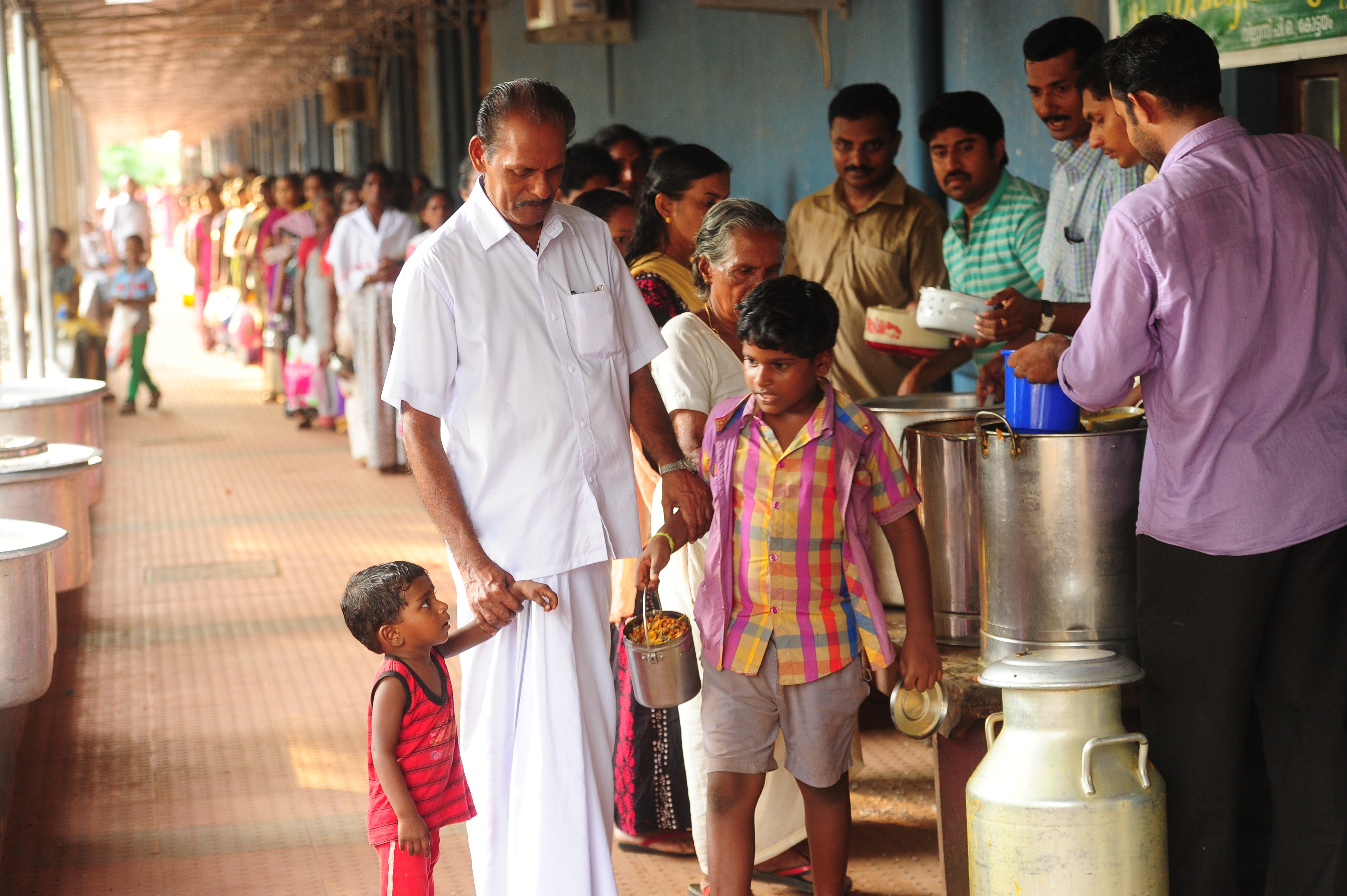 For ensuring hygienic preparation of food, modern kitchen with steam cooking arrangements have been established. Preparation of food is mainly done by volunteers. Ladies and gents from nearby places join the food preparation efforts after the Morning Prayer. In addition groups of people under the banner of voluntary organizations, students of professional colleges, brothers and sisters from seminaries and nunneries etc. help in the activities.